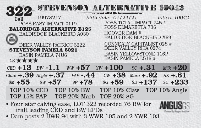 • Four star calving ease, LOT 322 recorded 76 BW for