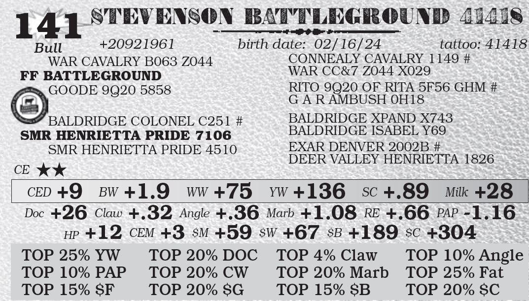 We will continue to offer a pickup credit of $100 per head for all bulls picked up within 7 days of