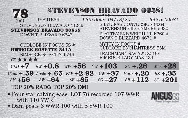 • Four star calving ease, LOT 78 recorded 107 WWR