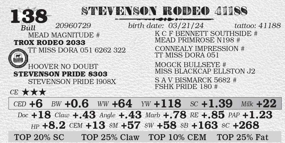 We will continue to offer a pickup credit of $100 per head for all bulls picked up within 7 days of