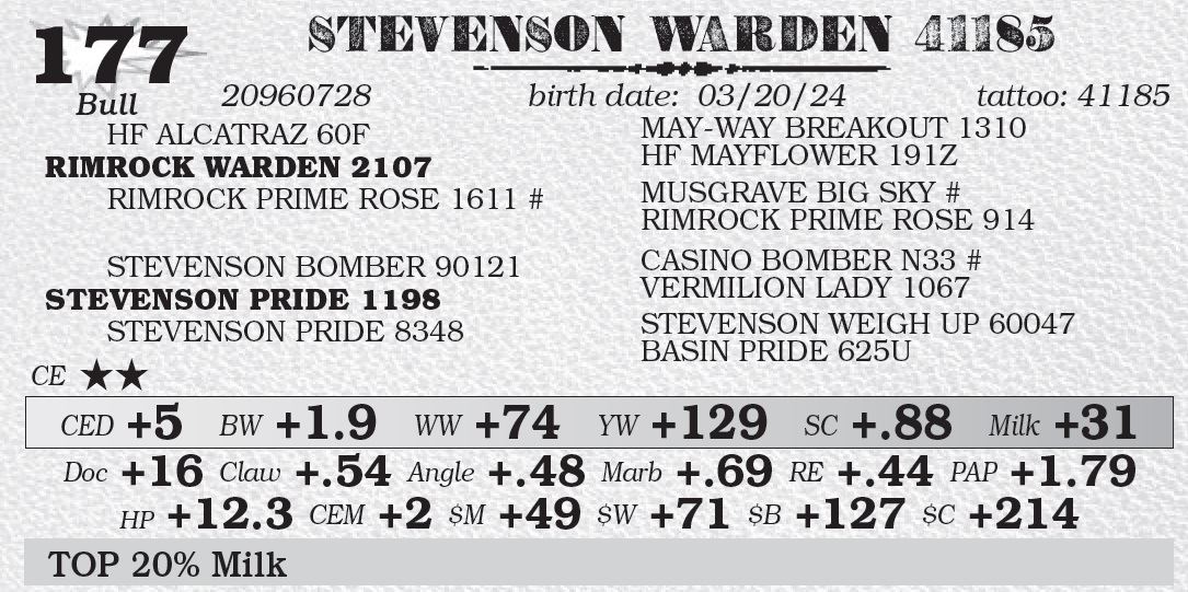 We will continue to offer a pickup credit of $100 per head for all bulls picked up within 7 days of