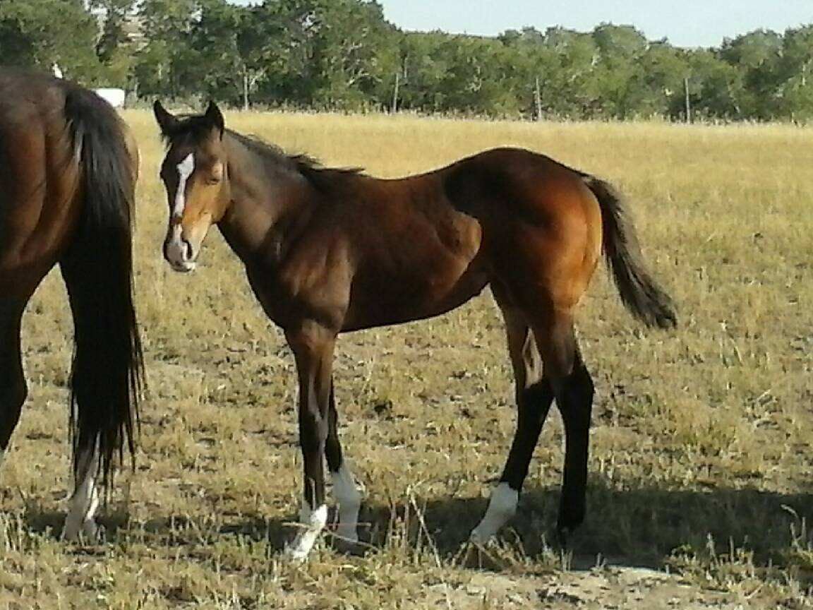 A perfect combination of cow and run in this filly. She has Grays Starlight, Smart Chic Olena, Seattle Slew, Colonel Freckles , Top Sail Whiz and First Down Dash right on her papers. You won' t go wrong with this filly in the arena or on the ranch. When she is done proving herself she will make an excellent addition to a broodmare band. Her sire has a perfect disposition and is being ridden in the arena by ouyr 3 and 4 yr. old grandchildren.