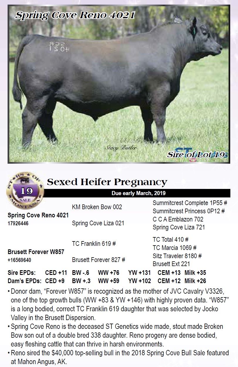 • Reno sired the $40,000 top-selling bull in the 2018 Spring Cove Bull Sale featured