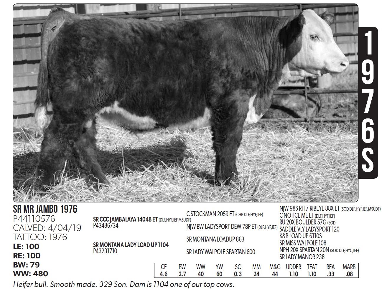 Bulls selling are guaranteed for the first breeding season. Every animal in this sale is, to the best of our knowledge, free from any disease or defects. All animals are guaranteed breeders. If an animal fails to breed a.er a period of six months, it may be returned to the seller in good condition and in compliance with Montana Health Regulations. The seller reserves the right to try said animal for six months and if it proves to be a non-breeder, either an animal of comparable value will be substituted or credit will be given in a future sale on animal for animal basis. All pregnant females...