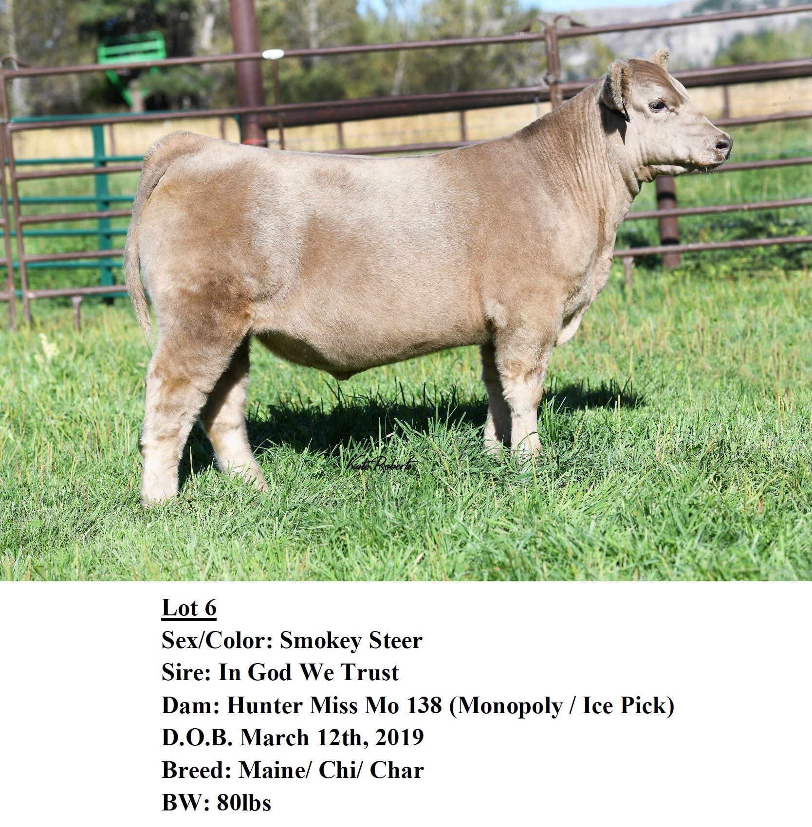 Trust in this steer will do all the right things for your show year! Free moving, big butt, deep middle and freaky fronted Steer will turn some heads for sure. SALE WEIGHT 630LBS.