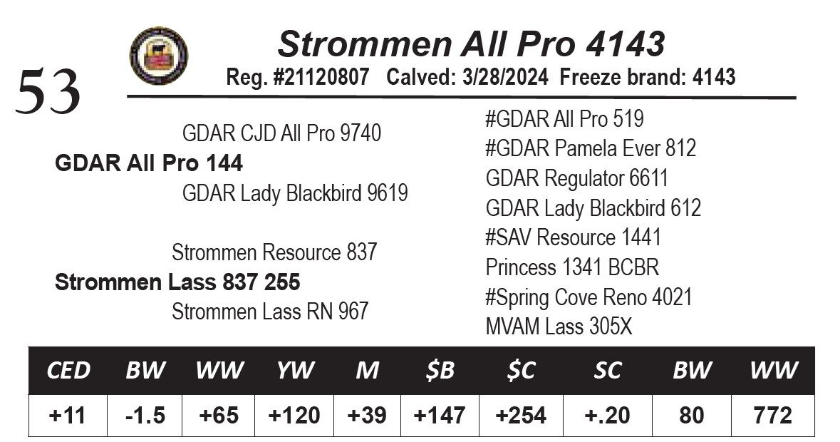 Another good calving ease bull. Don't overlook this one. He's the second youngest in the sale and will be just over 11 months old on sale day! *His Carcass EPDs: Marb: +.75, RE: +.53. His WR: 102, Dam’s WR: 1/102.
