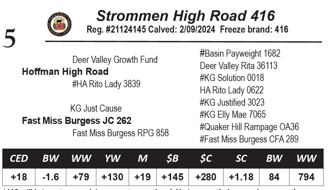 416 will bring strong calving ease to your herd. He is smooth, long and easy on the eyes.*His dam is another hand picked heifer from the Fast side of the herd. I studied these females for days before I made the final selection from the entire 2022 heifer crop.*416 should be a great selection for unassisted calving. Dam's WR: 1 @ 105.