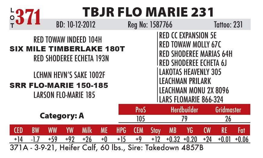 371A - 3-9-21, Heifer Calf, 60 lbs., Sire: Takedown 4857B