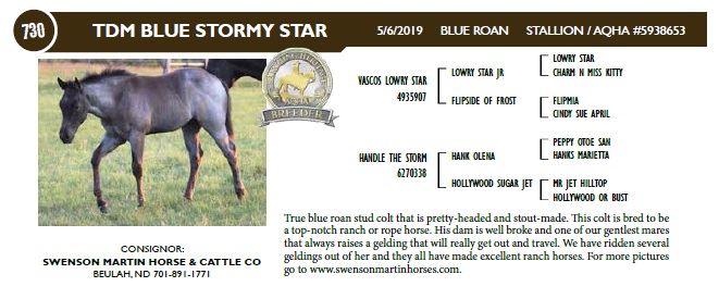 True blue roan stud colt that is pretty-headed and stout-made. Th is colt is bred to be