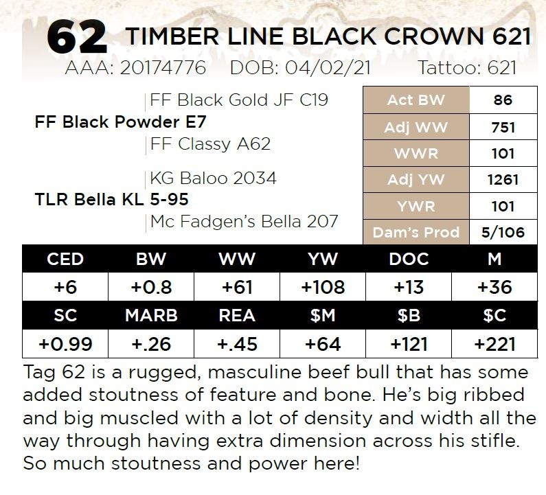Tag 62 is a rugged, masculine beef bull that has some