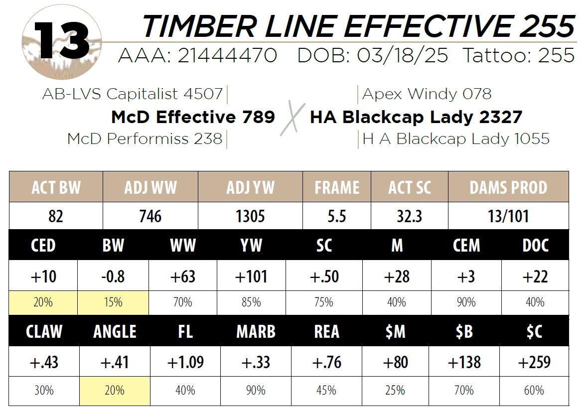 surprise that she raised this heater in her 14th year in production. He’s has the epd profile of a heifer bull and the phenotype of a beef bull.
