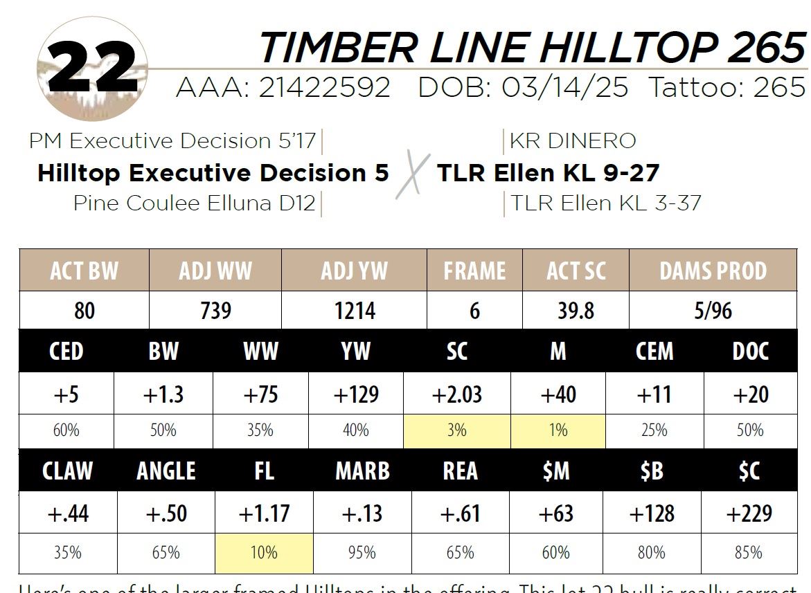Here’s one of the larger framed Hilltops in the offering. This lot 22 bull is really correct