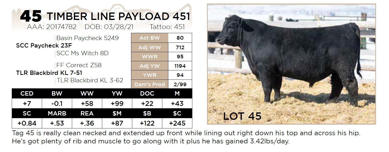 He’s got plenty of rib and muscle to go along with it plus he has gained 3.42lbs/day.