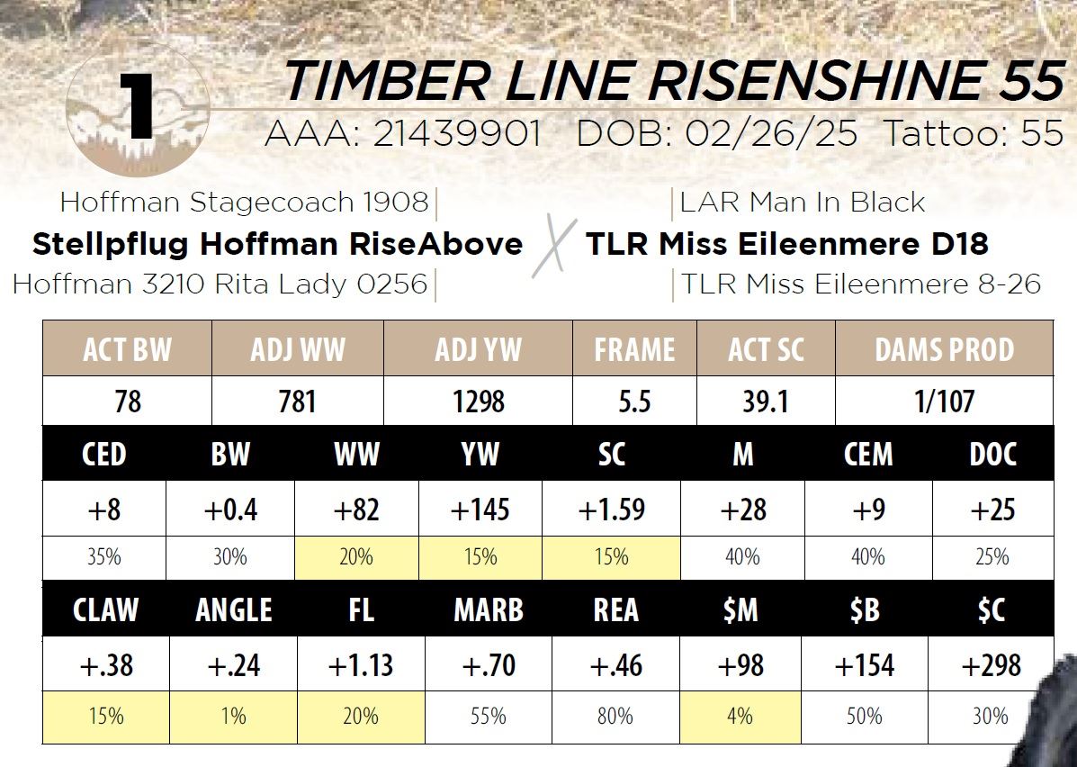 in the top 20% of the breed for WW and YW, top 15% for Claw and