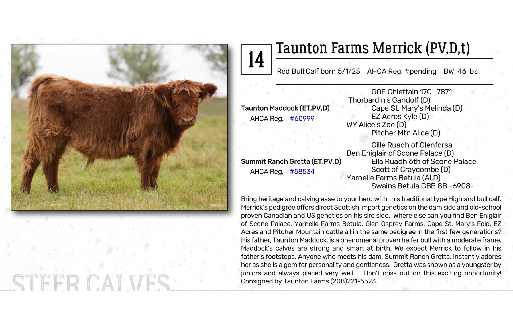 Merrick’s pedigree offers direct Scottish import genetics on the dam side and old-school