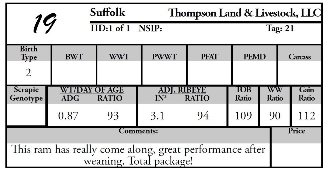 This ram has really come along, great performace after weaning. Total package!
