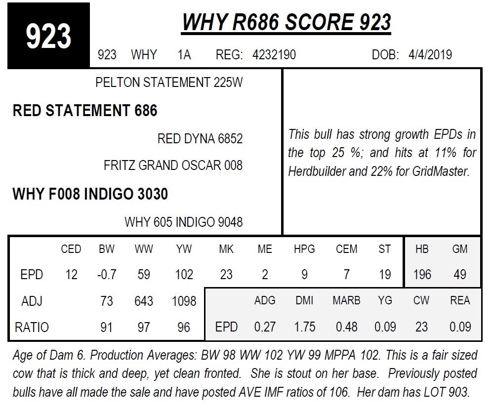 bulls have all made the sale and have posted AVE IMF ratios of 106. Her dam has LOT 903.