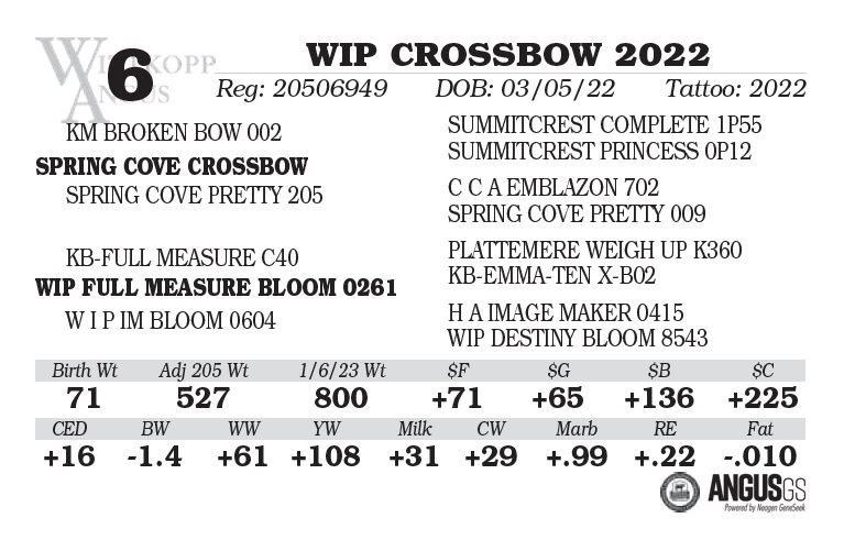 bull will be given as credit in a future Wittkopp