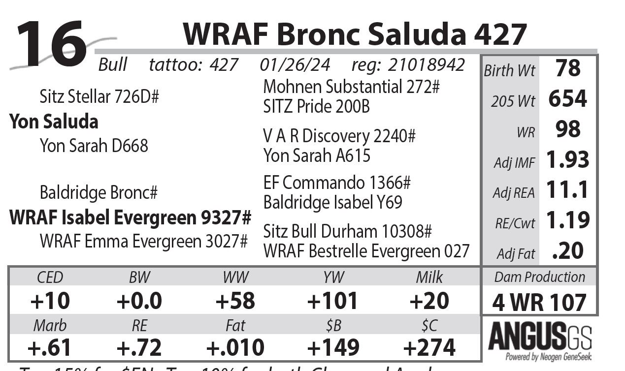 • 8 Pathfinders in pedigree including his dam. Cow tag 927.