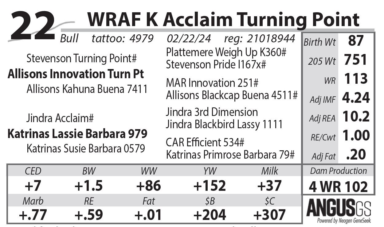 • Tied for highest nursing ratio. WW EPD and Milk EPD are top 2%.