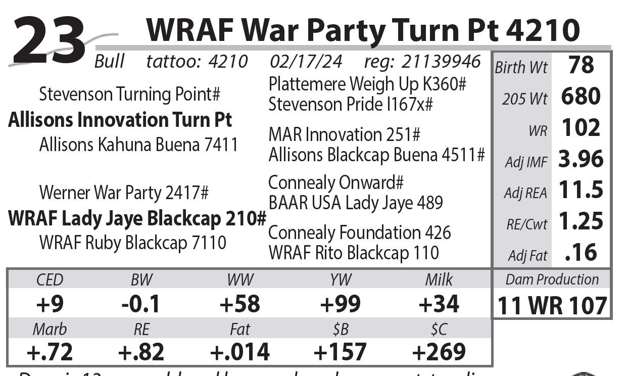 • 8 Pathfinders in pedigree including his dam. Cow tag 210.