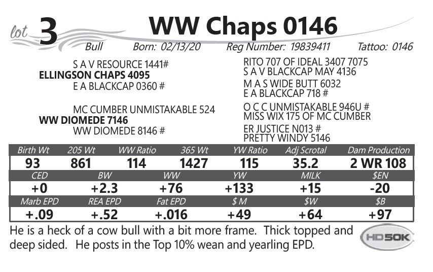 deep sided. He posts in the Top 10% wean and yearling EPD.