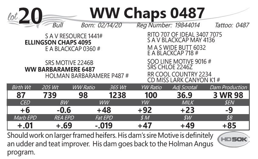 an udder and teat improver. His dam goes back to the Holman Angus