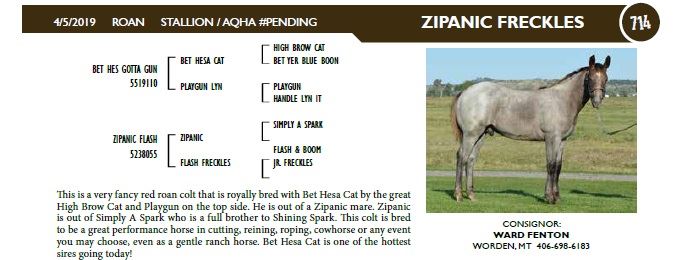 High Brow Cat and Playgun on the top side. He is out of a Zipanic mare. Zipanic